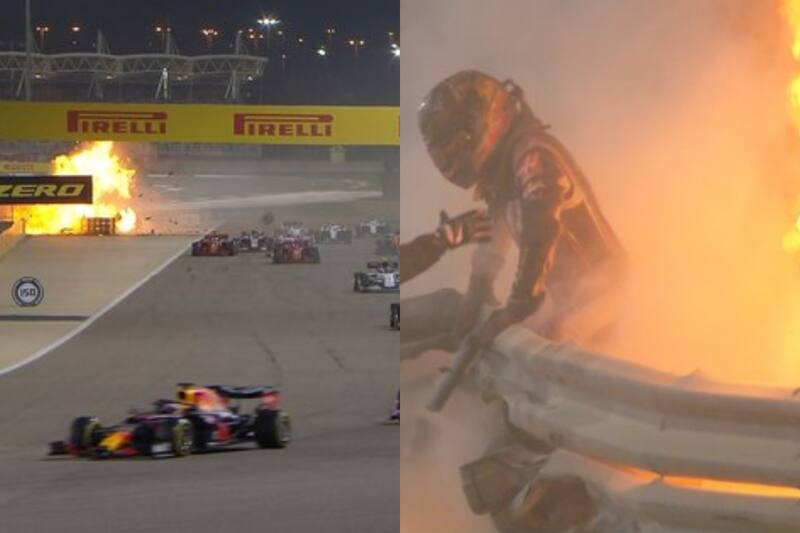 Grosjean consiguió salir entre las llamas después de 27 segundos gracias a un espacio vital entre el guardarraíl y el coche. "Esto fue espantoso. Romain está fuera del monoplaza y está bien", confirmó Haas. Así, el francés, visiblemente "aturdido", fue trasladado en helicóptero al hospital para someterse a algunas pruebas, aunque aparentemente solo sufre "quemadoras en manos y tobillos".