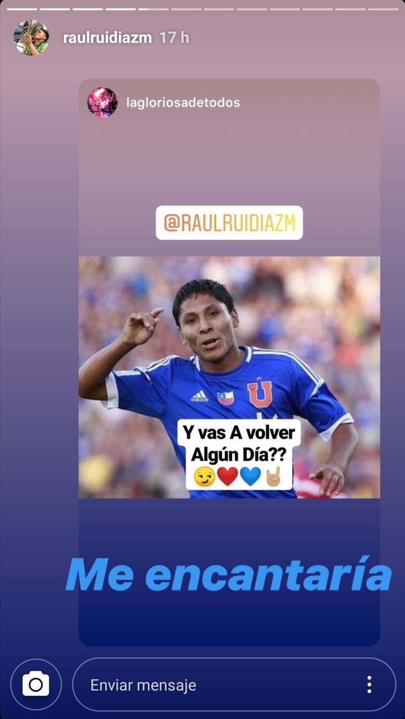 Cada cierto tiempo, los hinchas azules le manifiestan su cariño a través de redes sociales y le piden que regrese, aunque esta vez, el goleador devolvió el coqueteo. Resulta que una página de Instagram que sigue a la "U" lo etiquetó en una historia, consultándole por la posibilidad de un regreso, a lo que el seleccionado incaico respondió: "Me encantaría". La respuesta rápidamente prendió a los fanáticos.