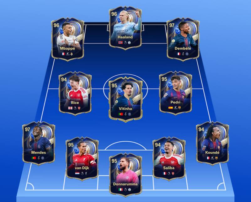 En el mediocampo aparecen el inglés Declan Rice (Arsenal), el portugués Vitinha (Paris Saint-Germain) y el español Pedri (FC Barcelona).