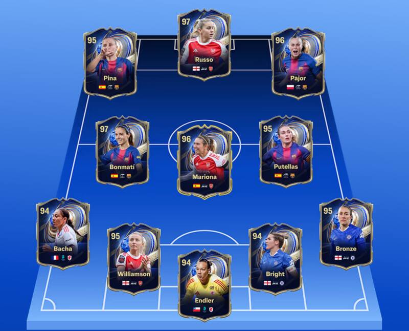Finalmente, el tridente ofensivo lo conforman la española Claudia Pina (FC Barcelona), la inglesa Alessia Russo (Arsenal) y la polaca Ewa Pajor (FC Barcelona).