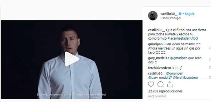 "Que el fútbol sea una fiesta para todos súmate y escribe tu compromiso #lacamisetadelfutbol", escribió el Nico.