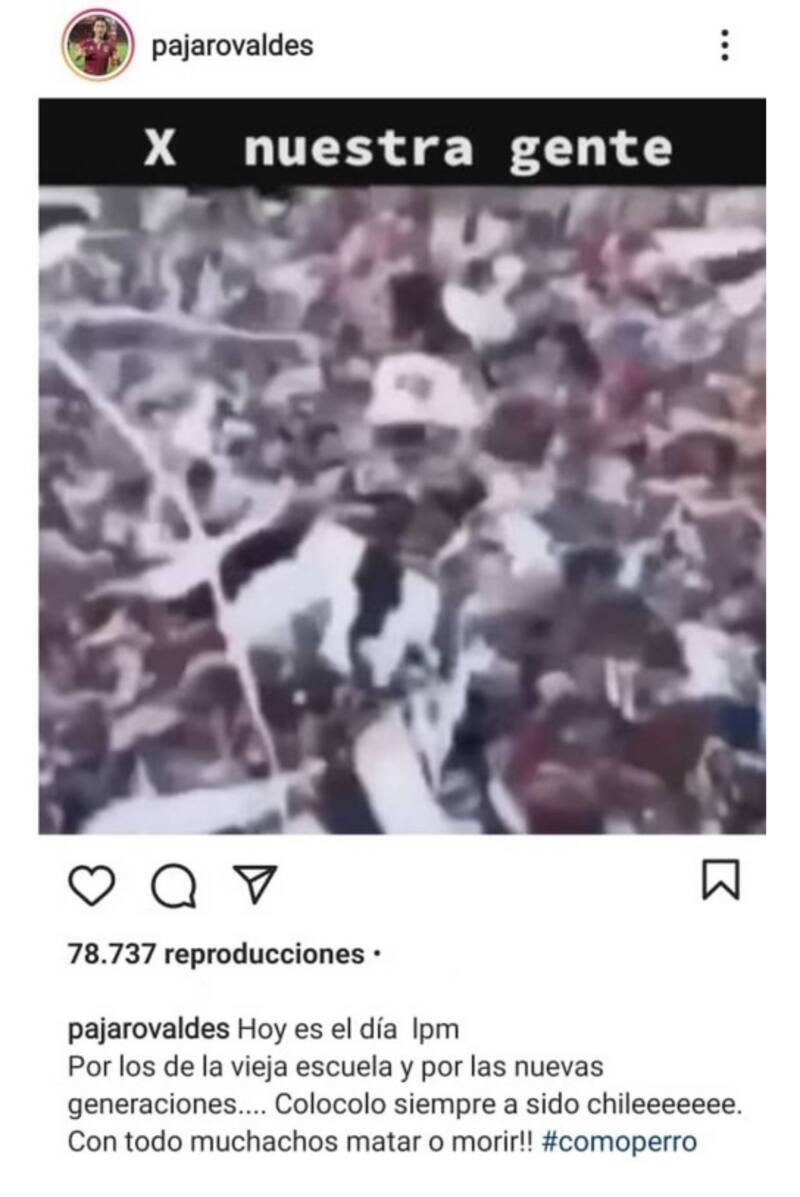 "Hoy es el día LPM. Por los de la vieja escuela y las nuevas generaciones. Colo Colo siempre ha sido Chile. Con todo muchachos, a matar o morir", escribió Valdés.