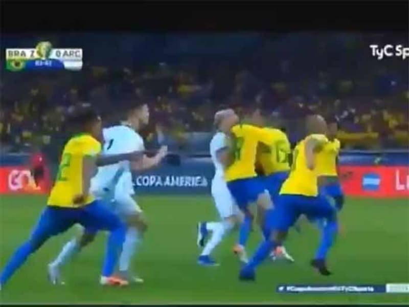 Según reportaron los fanáticos por redes sociales, en el minuto 38 del segundo tiempo el volante Arthur agredió sin pelota a Nicolás Otamendi en el área de Brasil.