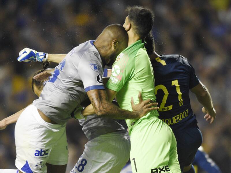 Las imágenes de televisión evidenciaron un choque casual de cabezas entre el defensa Dedé y el arquero xeneixe Esteban Andrada.