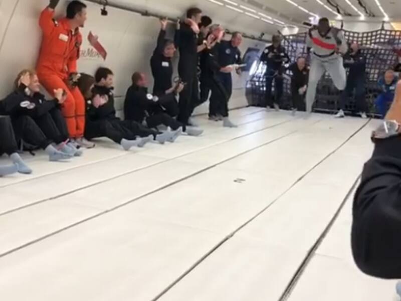 El jamaicano subió a un un avión Zero G y experimentó la ingravidez haciendo lo que más le gusta.