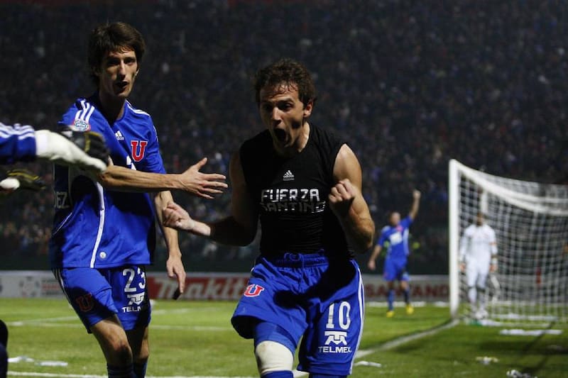 En una repleto Estadio Santa Laura, Montillo rememora su celebración de aquel histórico gol que sirvió para que la "U" avanzara a la siguiente ronda de la Libertadores de ese año, pese a caer por 1-2 y gracias a la victoria en la ida por 3-2 en el Estadio Maracaná.