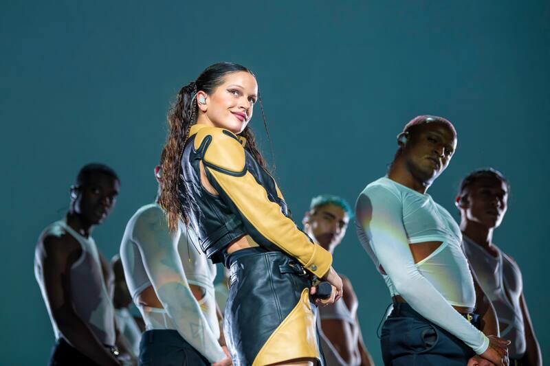 Enfundada en cuero y armada de su talento y algunos de los más importantes hits de los últimos años, brindó un show minimalista pero poderoso, sin banda y con un cuerpo de baile que funcionaba como una extensión de los característicos pasos aflamencados de Rosalía.
