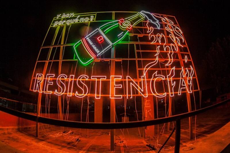 Este consistía en un letrero de luces neón que mostraba una botella de espumante, la cual en vez de lanzar espuma, tenía el fuego propio de una "molotov". La imagen estaba acompañada de la palabra "Resistencia".