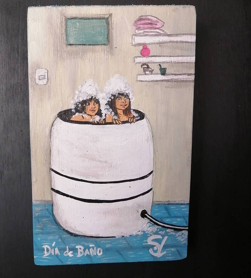 Día de baño, acrílico sobre terciado 20,5 x 13 cm[/caption]