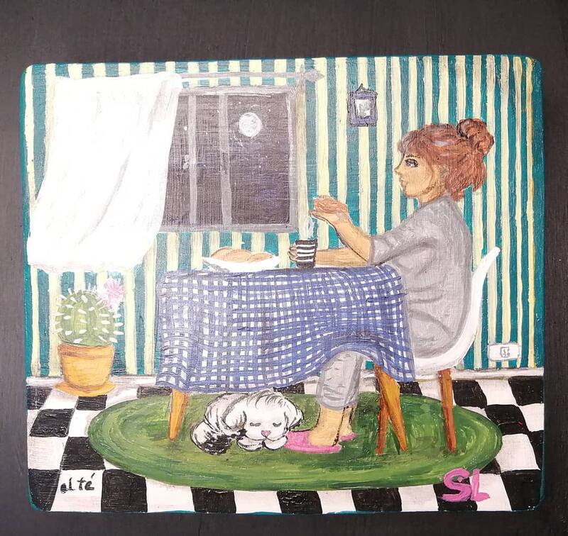 El té, acrílico en terciado 19,5 x 17 cm[/caption]