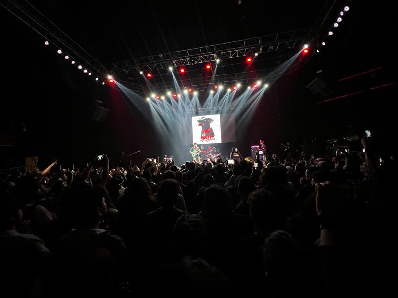Ahí, con las luces apagadas del recinto de calle San Diego, la antesala del show estuvo marcada por la canción “Manifiesto” de Víctor Jara y la aparición de una ilustración dedicada al Perro Matapacos.