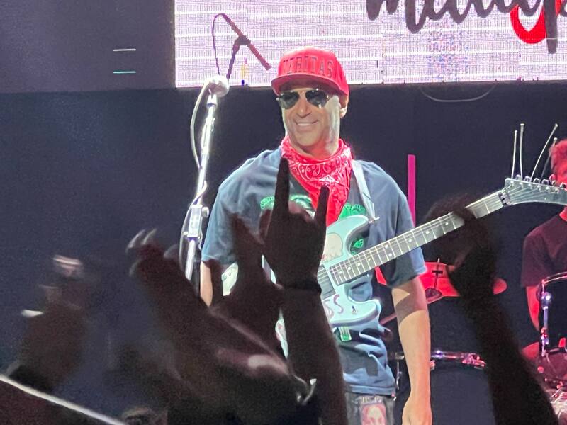 “Les digo a todos mis amigos, les digo a todos mis camaradas, les digo a todos mis enemigos que los fans de Santiago son los mejores y los más alocados de todo el puto mundo. Así es que en repago de por su genialidad a través de los años, vamos a tocar canciones de 20 discos diferentes y lo único que pido es que ustedes se vuelvan apeshit todo el tiempo”, remarcó.