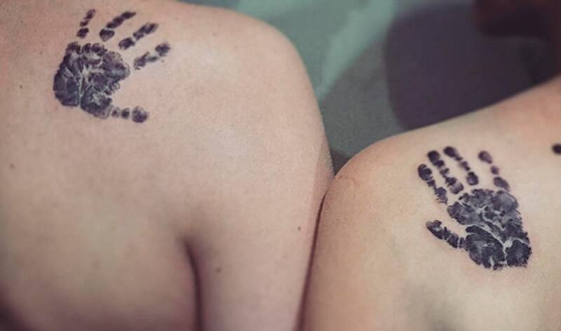 Es que la joven pareja quiso plasmar el bello momento que están viviendo, con un tatuaje de las pequeñas manos del primer broca de la pareja en la espalda de cada uno.