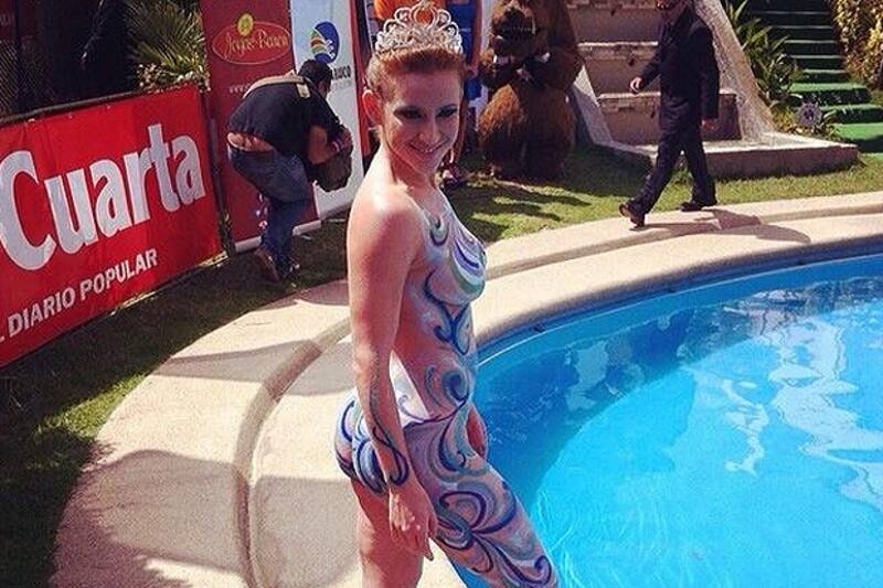 3.- Sigrid Alegría: La actriz de Canal 13 se alzó como la reina 2014 del Festival de Viña del Mar y en el tradicional piscinazo sorprendió a todo Chile con una sensual presentación con "cuerpos pintados".