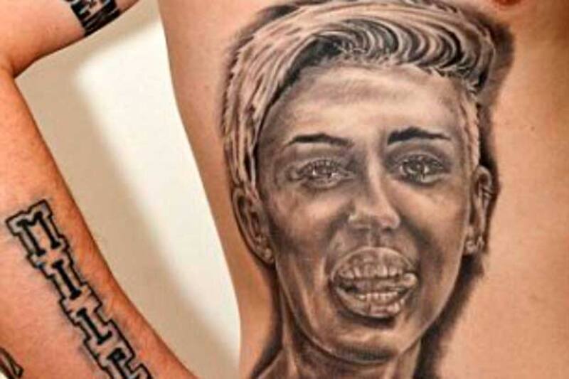 El locateli es identificado como Carl McCoid y desde el 2008 en adelante se ha hecho 22 tatuajes relacionados con la ex Hannah Montana. Se pasó.