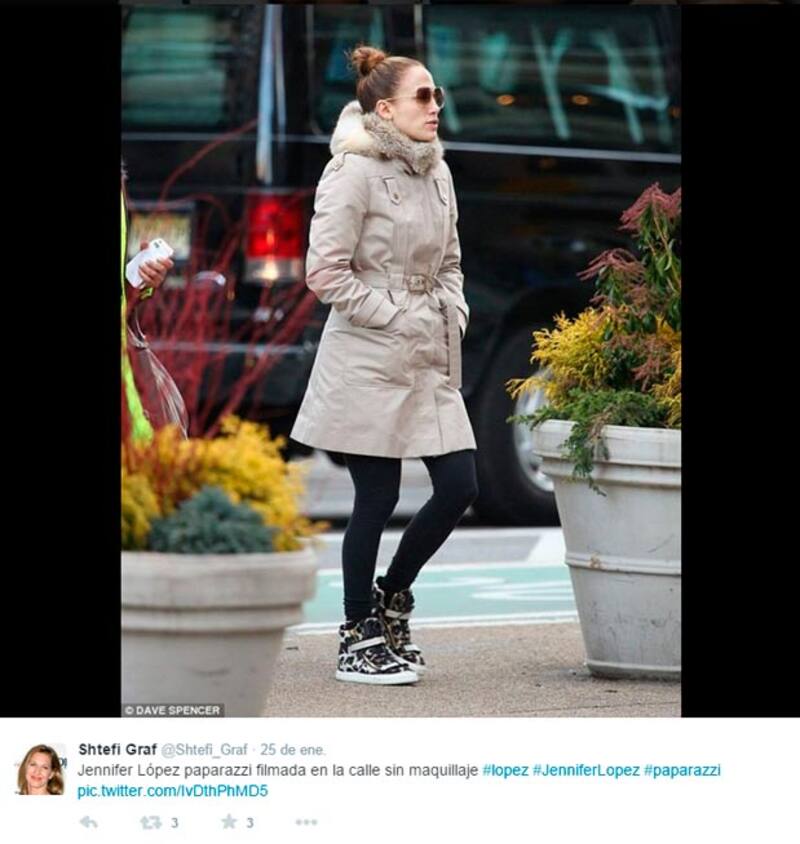 Sin embargo, muchos podrían quedar decepcionados de la ex de Marc Anthony, ya que un paparazzi la captó in fraganti sin maquillaje y matando el tiempo por las calles de Nueva York.