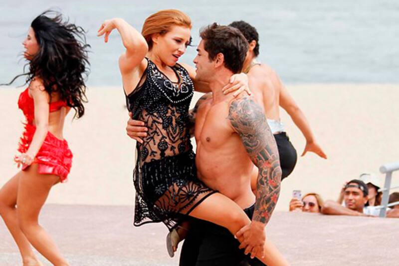 3.- En la presentación de las candidatas se lució con un coqueto baile junto a Thiago.