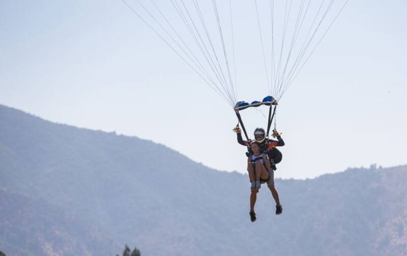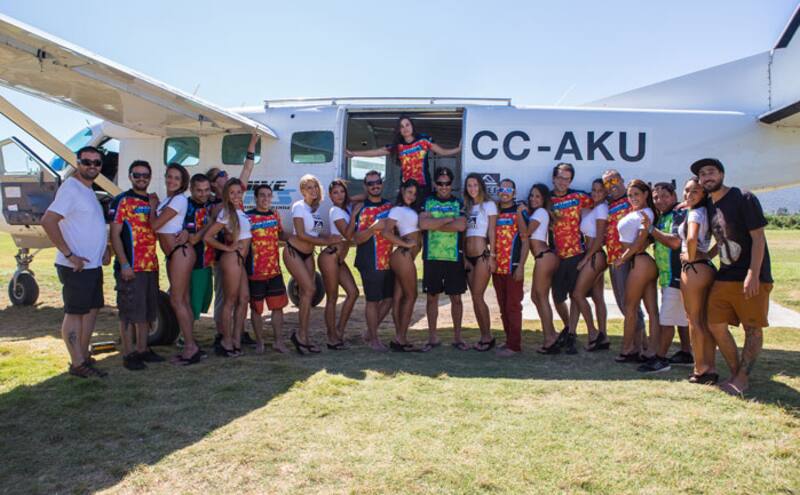 Claro, porque sumarse a la prueba del paracaidismo no es tan papa como parece. Con el vértigo en las alturas y un lento descenso a tierra, el julepe se apodera hasta del más chorizo. Bien lo comprobaron las bellezas, que ni con su cojín natural evitaron sudar en la experiencia.