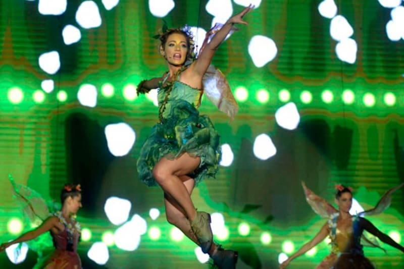 La rucia, que saltó a la fama tras haber participado en en la teleserie Vuelve Temprano, cantó, bailó y hasta voló como una hada, creyéndose el cuento infantil todo el rato.