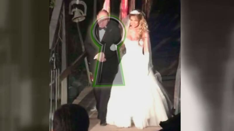 Tal como si hubiera salido de un cuento de hadas, María Eugenia avanzó al encuentro de su pierna peluda en un salón ambientado en morado y con un traje de novia "que me compré en el extranjero".