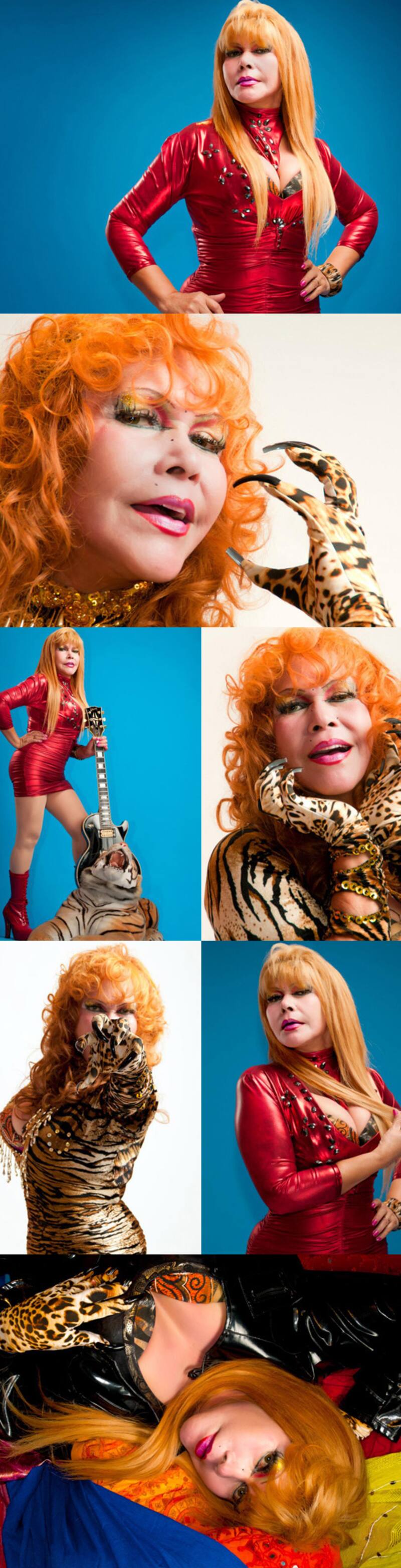 La mujer, cuyo nombre real es Judith Bustos, posa en las imágenes con un ajustado vestido rojo y una guitarra eléctrica para encender las pasiones de aquellos que se infartan al ver a una mujer con el instrumento en la mano.