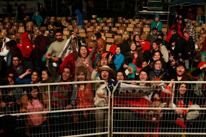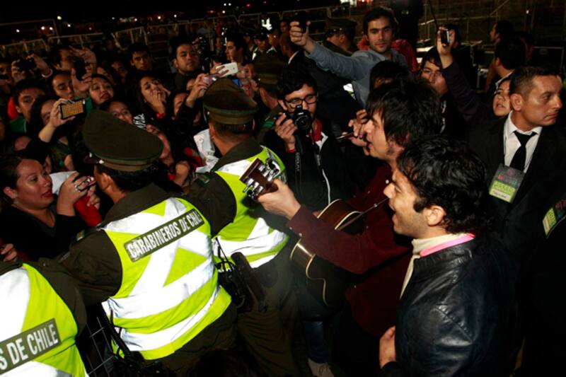 Como estaban fregados, ya que la producción ya había desarmado el escenario, los embajadores culturales de Concepción sacaron la guitarra y cantaron desconectados junto a la barra pop que cantaba sus canciones ante la atenta mirada de los carabineros, que le dieron seguridad a la improvisada tocata.