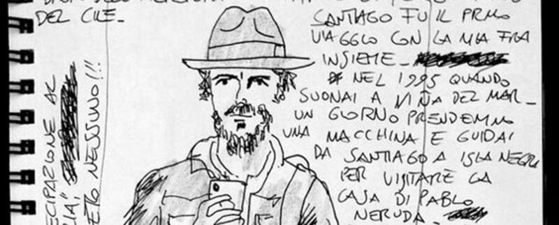 Si le digo que Lorenzo Cherubini está enamorado de nuestro Chilito, probablemente a usted no le importe naíta, pero fíjese que se trata del cantante italiano Jovanotti, que se presentará hoy en el Lollapalooza. El chiquillo, que desordenó a las colegialas en los 90, dibujó un autorretrato con una escritura en italiano. Y como quedamos cachúos, nos pusimos a traducir para entender.