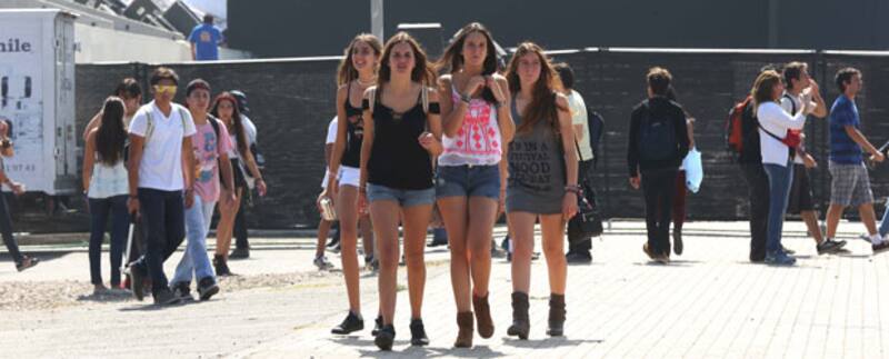 Ninguno de los hombrones que cabecearon y cantaron ayer en el festival pudieron quedar indiferentes con las bellas minurris que andaban por allato en el Parque O'Higgins.