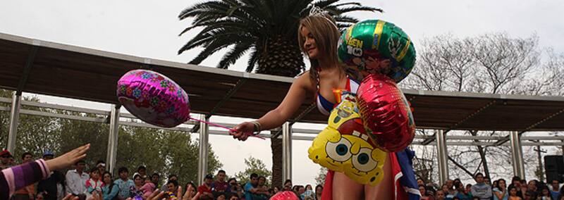 Tal como lo prometió en su campaña a reina de Colina, la lindura llegó y dejó lelos a los machotes que quedaron turnios con tanta curva. Además regaló globos, dulces y juguetes a los niños.