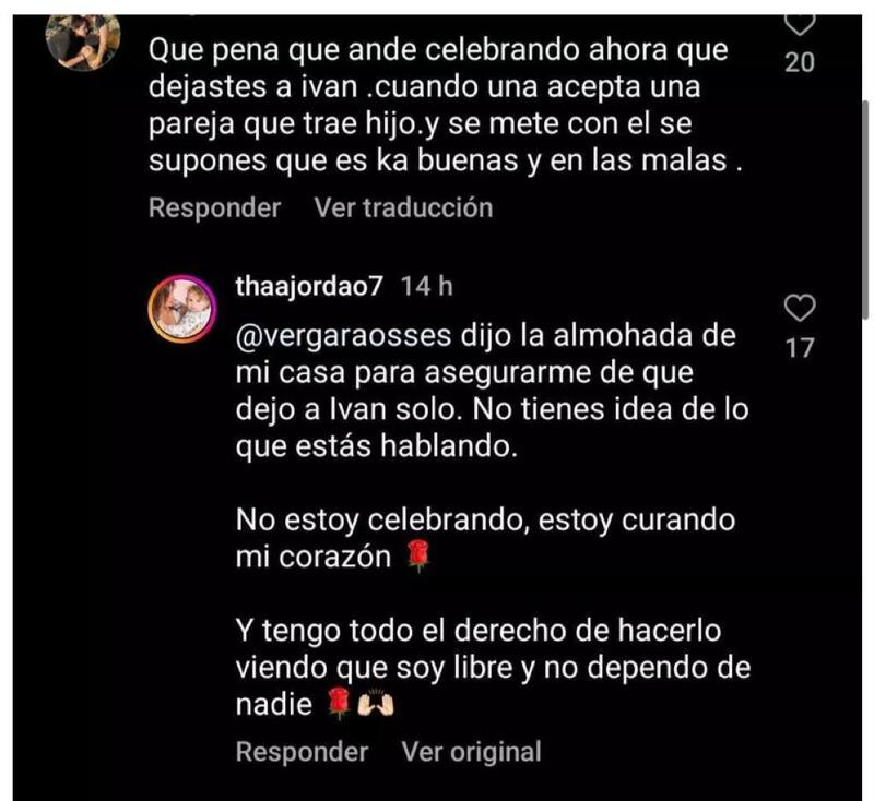 “Que pena que ande celebrando ahora que dejaste a Iván cuando una acepta una pareja que trae hijo. y se mete con el se supones que es las buenas y en las malas”; “Bueno si no quieren que uno no opine no expongan entonces solo les gustan recibir buenos comentario...”, fueron algunos de los comentarios.