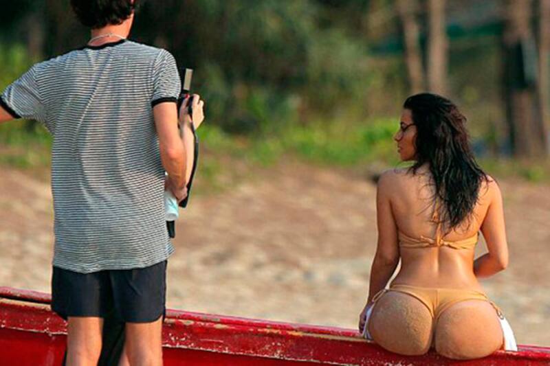 La belleza dejó caer su inmortal retaguardia sobre un pequeño bote y se dejó fotografiar desde atrás. La infartante imagen era lo más parecido a una pera mutante o a un guitarrón de mariachi.