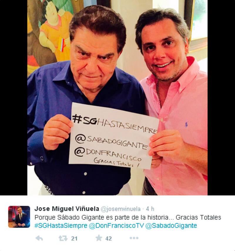 Viñuela aprovechó la ocasión para tomarse una selfie con Mario Kreutzberger y el hashtag oficial de la despedida del programa, #SGHastaSiempre.
