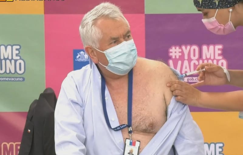 En febrero, el ministro de Salud Enrique Paris fue inoculado como parte del Plan Nacional en Providencia, pero olvidó ponerse un atuendo más ad hoc al momento y terminó con la camisa aparatosamente abierta y rodeado de enfermeras para descubrir su hombro.