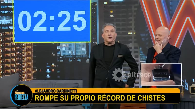 El comediante trasandino Alejandro Gardinetti rompió su propia marca, al realizar una veloz rutina en la que logró soltar chiste tras chiste sin parar, superando marcas que ya había impuesto en su país.