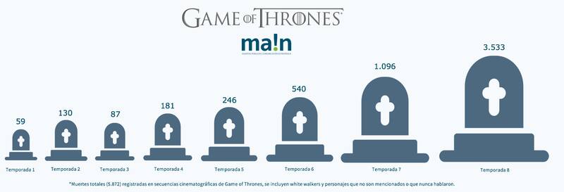 Es por esto que, el especialista en comunicación digital, narraciones transmedia y crítico de series, cómics y anime de Main Comunicación, Ignacio Sarroca, realizó una observación de todas las muertes de que sucedieron a lo largo de Game of Thrones, excluyendo a los roles "no hablantes o no nombrados".