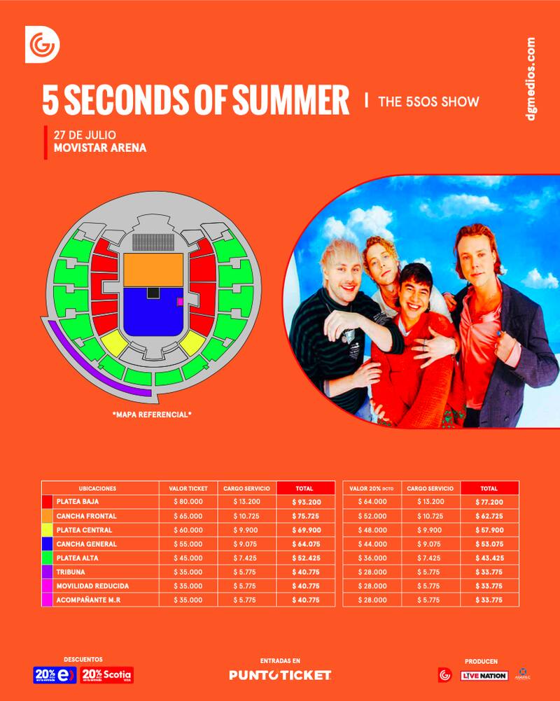 Trabajo que presentarán este 2023 en la gira “The 5 Seconds of Summer Show” que los trae a Chile el próximo 27 de julio en el Movistar Arena. Los precios van desde $40.774 hasta $93.200.