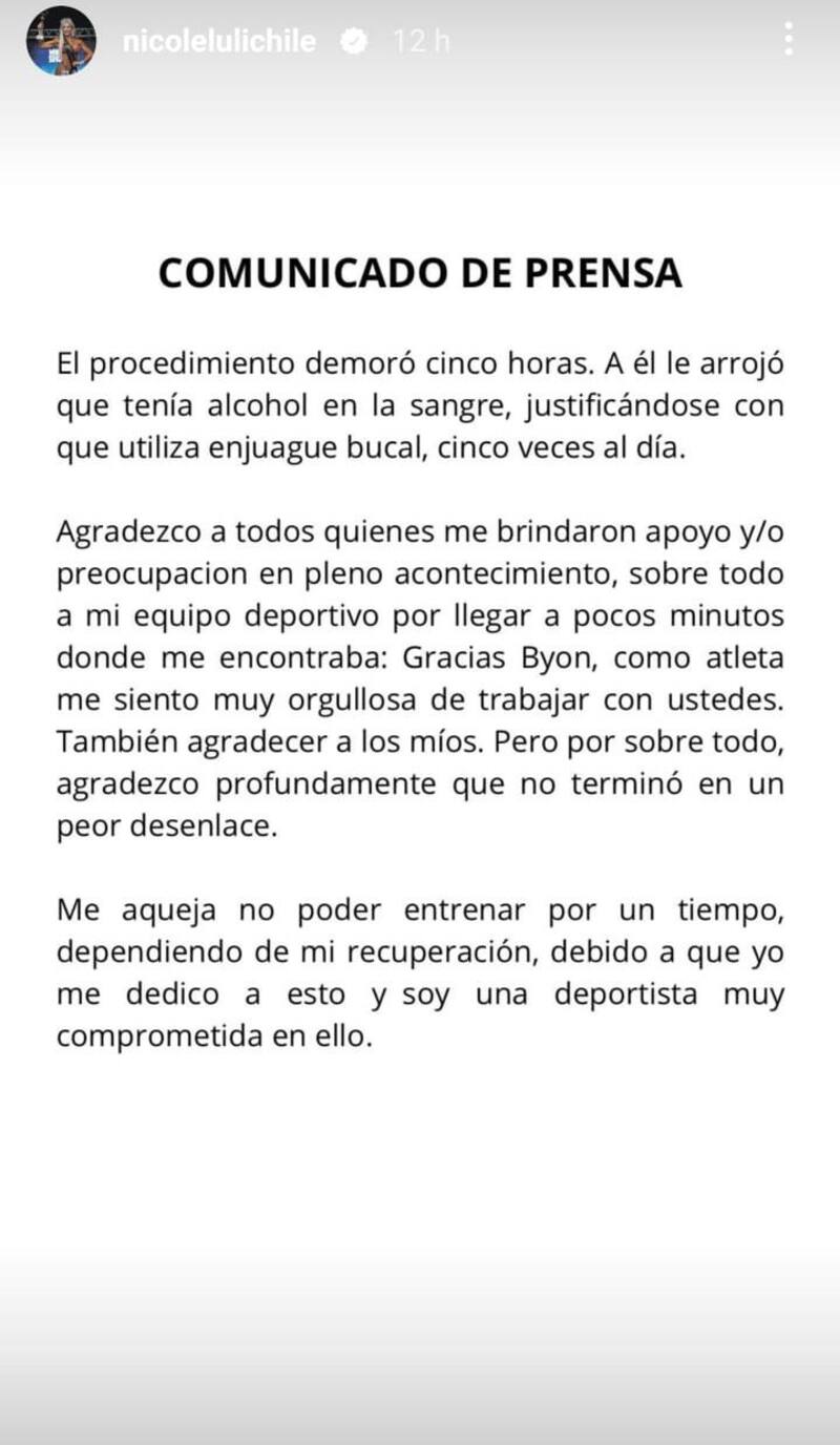 Tras dichos acontecimientos, “Luli” se refirió en detalle a lo que ocurrió el pasado lunes, en un comunicado que compartió en sus redes sociales.