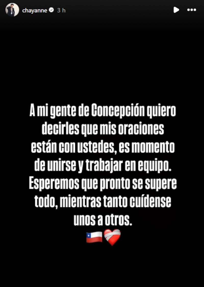“A mi gente de Concepción quiero decirles que mis oraciones están con ustedes, es momento de unirse y trabajar en equipo”, expresó.