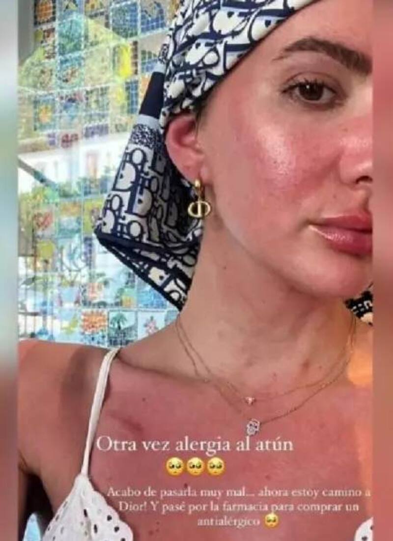 “Otra vez alergia al atún. Acabo de pasarlo muy mal… ahora estoy camino a Dior y pasé por la farmacia a comprar un antialérgico”, escribió la argentina en la mencionada plataforma virtual.