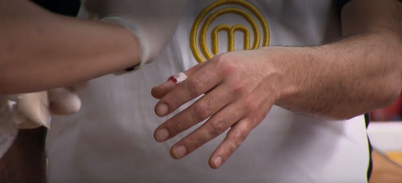 "Estiré el brazo y me pegué un corte no muy adecuado, pero yo creo que le da sazón y pasión al plato el dedo cortado. Siempre en la cocina ocurren accidentes. Todos venimos dispuestos a eso. Estamos con cuchillos nuevos súper buenos", bromeó en el espacio luego de que el equipo de enfermería le hiciera una curación rápida y le colocara un parche con el fin de que siguiera cocinando.