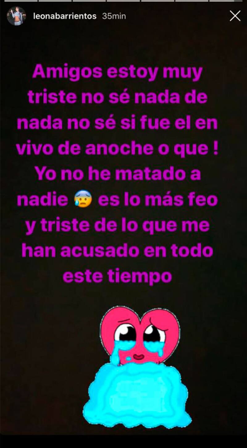 "No tengo idea por qué la gente me calumnia de esta manera, no tengo idea que he hecho yo para ganarme el título de asesina, no tengo idea, pregúntenle a quien posteo", sostuvo.