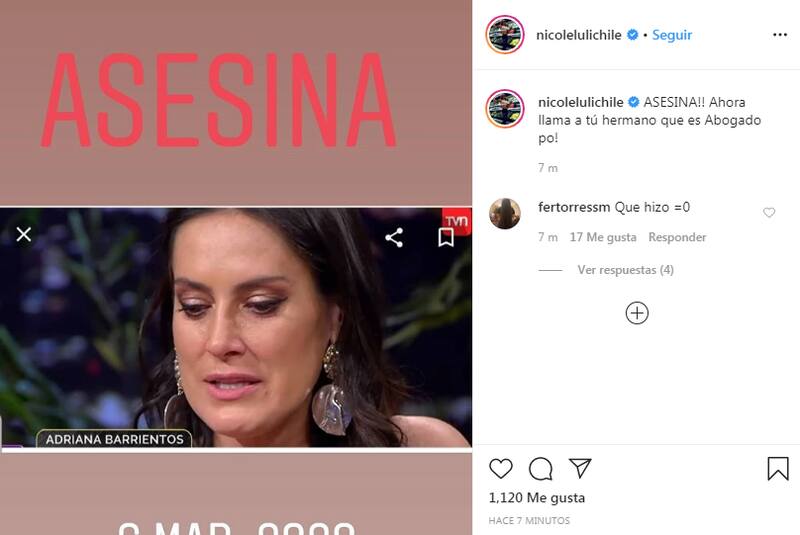 La modelo subió una serie de publicaciones en la misma plataforma virtual, las cuales acompañó con fotografías de Adriana Barrientos y unos particulares mensajes que dejaron a todos helados. Incluso, en todas utilizó la palabra asesina.