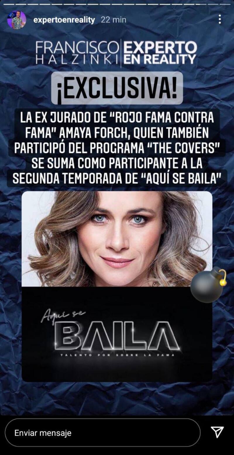 “La ex jurado de ‘Rojo fama contra fama’, Amaya Forch, quien también participó del programa ‘The Covers’ se suma como participante de la segunda temporada de ‘Aquí se Baila’”, reveló Halzinki, confirmando a otras nuevas participantes.