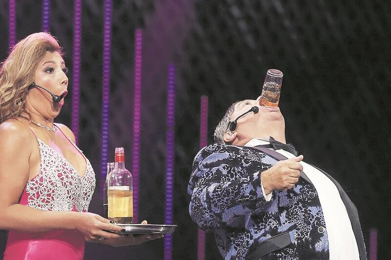 Cuando el público entro en euforia fue cuando el artista hizo su magia: se tomó su piscola al seco... y sin asco.