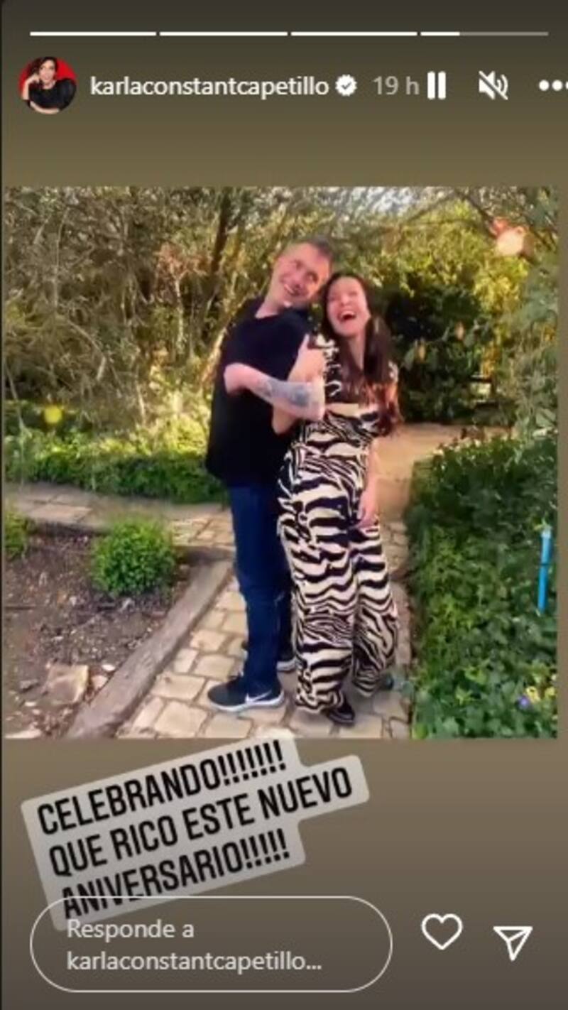 Además del post, la animadora de tv celebró su romance compartiendo otra foto en sus historias. “Celebrando!!! Que rico este nuevo aniversario!!”, agregó enterneciendo con su historia de amor.