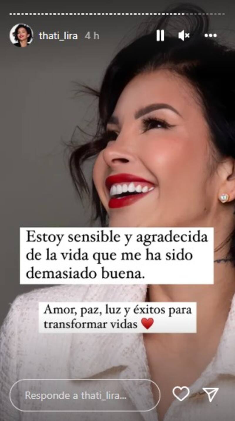 “Agradezco a mis amigas, a mis enemigos (a la gente que no me quiere) para mi es un gusto que no lo hagan, porque les trato cada vez mejor y mejor y mejor. Hasta que ustedes se den cuenta que su problema conmigo es ustedes mismos”, expresó Thati Lira.