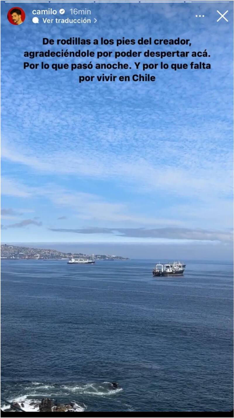 “De rodillas a los pies del creador, agradeciéndole por poder despertar acá”, escribió el intérprete en una historia de Instagram con el mar de la Ciudad Jardín de fondo.