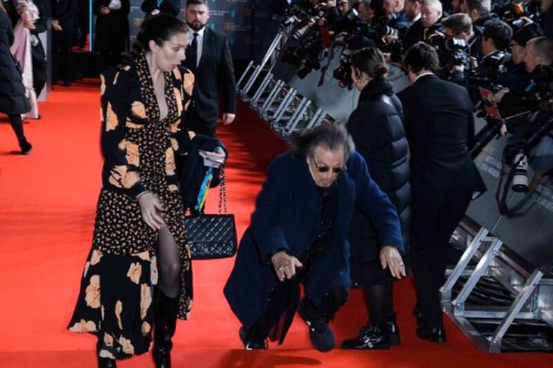 A pesar de que Al Pacino no consiguió el galardón por "Mejor Actor de Reparto" -por su rol de Jimmy Hoffa en The Irishman- en los premios Bafta, celebrados anoche, su presencia no pasó desapercibida gracias a un pequeño accidente que sufrió en la alfombra roja.