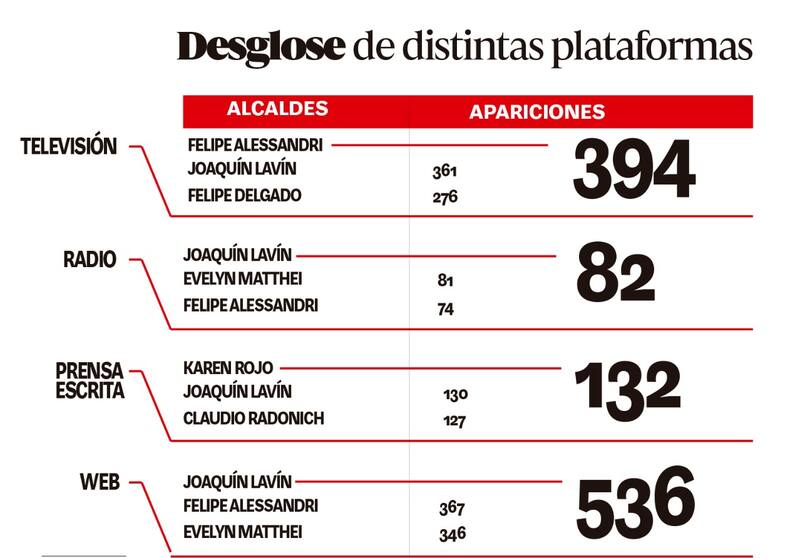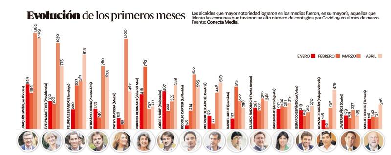 Y si hubo algo que consideró interesante fue ver "cómo algunos alcaldes supieron amplificar su visibilidad más allá de su rol en la pandemia. En muchos casos está ligado al uso de la TV, y, en particular, a los matinales, donde no ha habido un tratamiento similar según la región del alcalde o su relación con la contingencia".