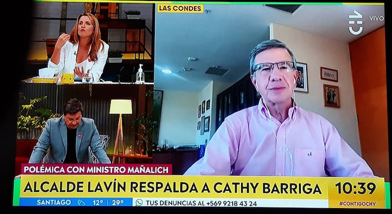 A la misma hora, un matinal que transmitía desde ese lugar (al sur de Santiago) optó por no televisar las declaraciones en vivo de la jefa comunal y, en su lugar, mostró en pantalla al edil de Las Condes, Joaquín Lavín, comentando el mismo tema, pero desde el sector oriente de la capital.